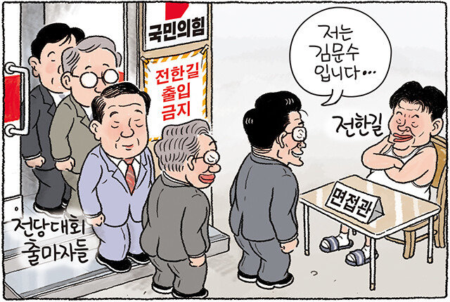 만화한겨레그림판당대표 전한길, 사무총장 김문수 [그림판]8월 11일 한겨레 그림판권범철기자수정 2025-08-11 15:43등록 2025-08-10 19:42 부조리한 권력 게임과 가면 무도회니체는 권력 의지가 인간 삶의 본질이라 보았지만,동시에 그것이 위선과 허위로 변질될 때를 신랄히 비판했습니다. 국민의힘이 전한길에게 당대표 심사를 받는 광경은,한편으로는 ‘진정한 권력 의지’가 아닌, 정치적 가면 무도회, 즉 허울뿐인 권력 놀이에 지나지 않는 듯 보입니다. 이 심사 과정은 명분과 절차라는 가면 뒤에 숨은권력 암투와 이해관계의 얽힘으로,실질적 변화나 새로운 가치 창출과는 거리가 먼 형식적 퍼포먼스일 가능성이 큽니다.가치의 허위와 권력의 희화화니체가 말한 ‘가치 전도’는 진정한 자기극복과 새..